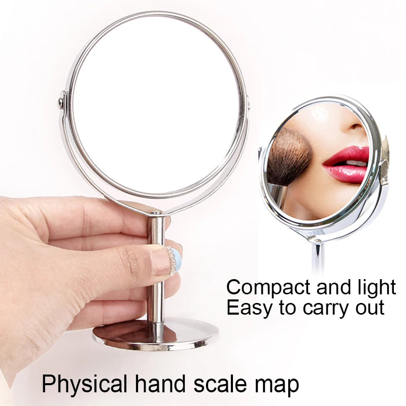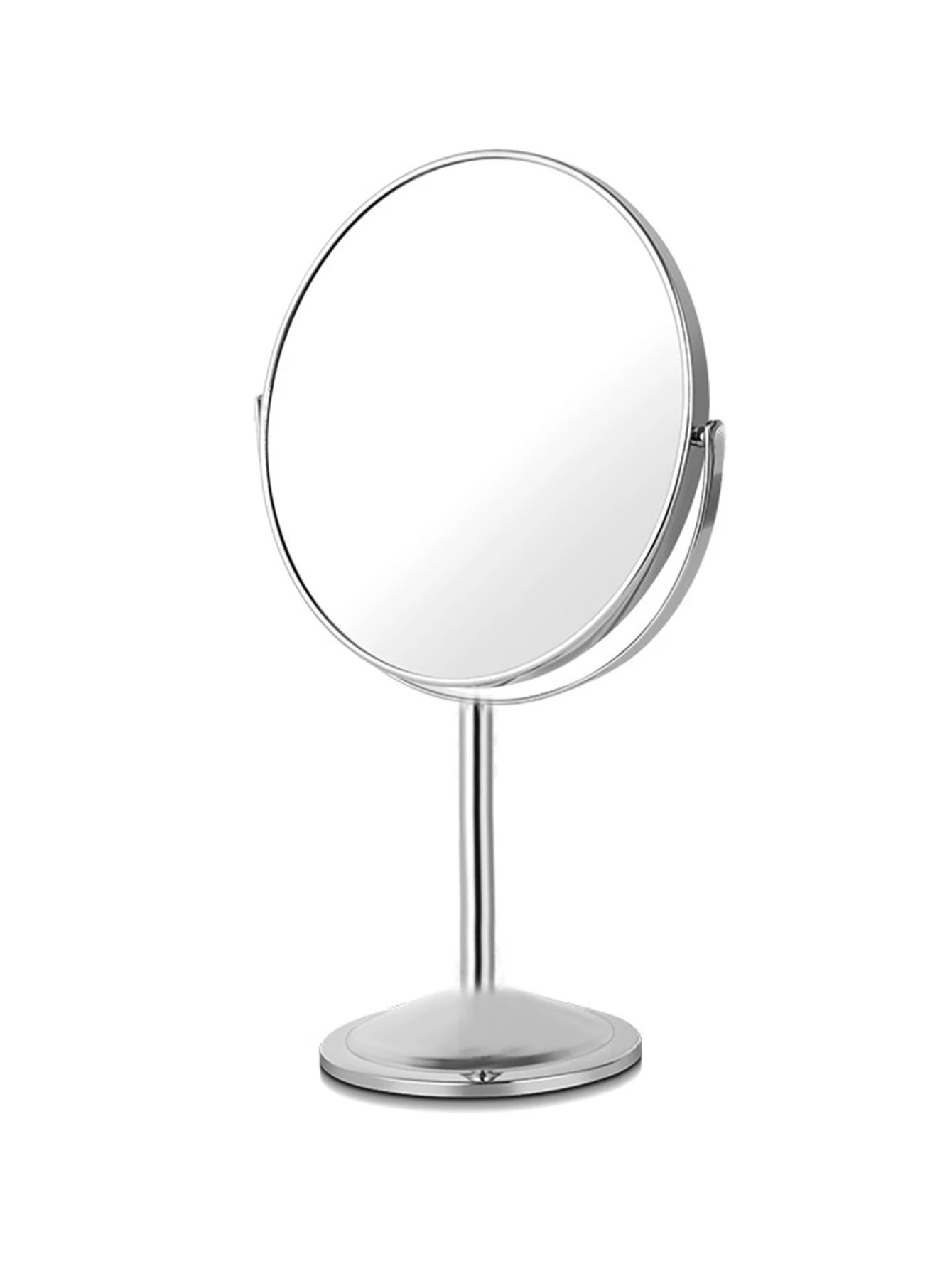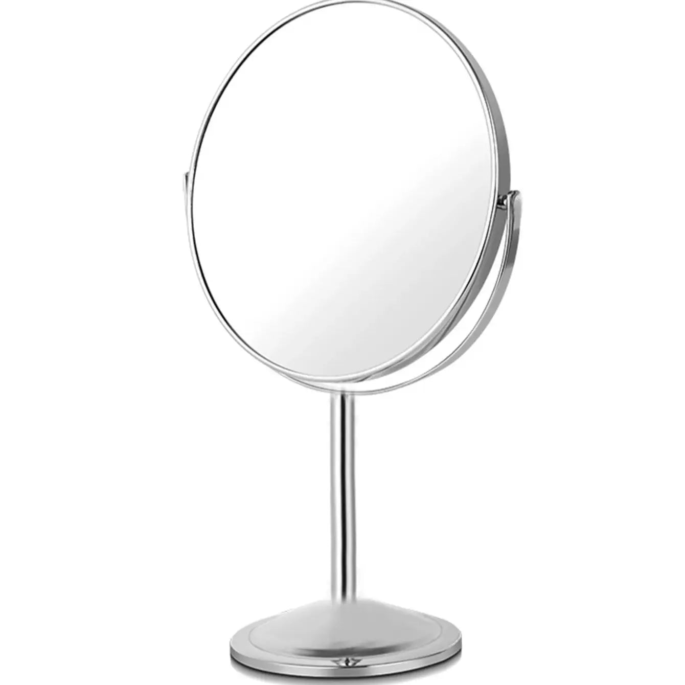 Specchio per il trucco grande in argento, a doppia faccia, rotazione a 360°