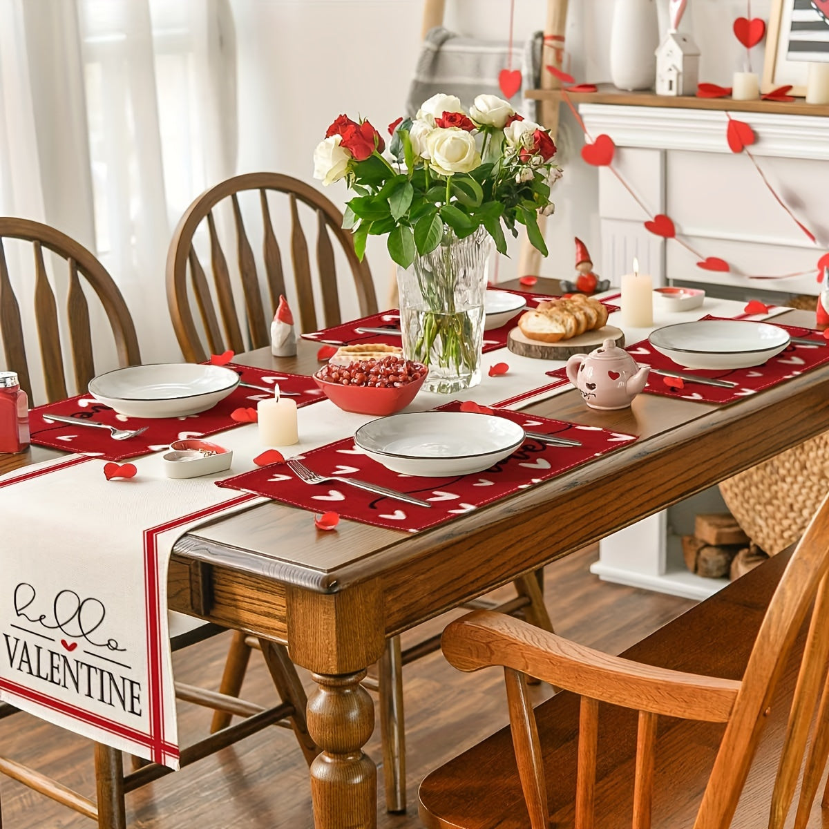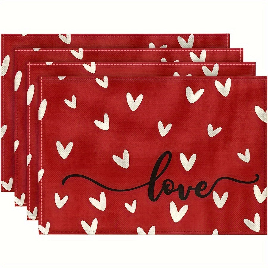 4 tovagliette in lino con cuori - Tovagliette rosse con motivo a cuore bianco romantico e lettere d'amore per la sala da pranzo