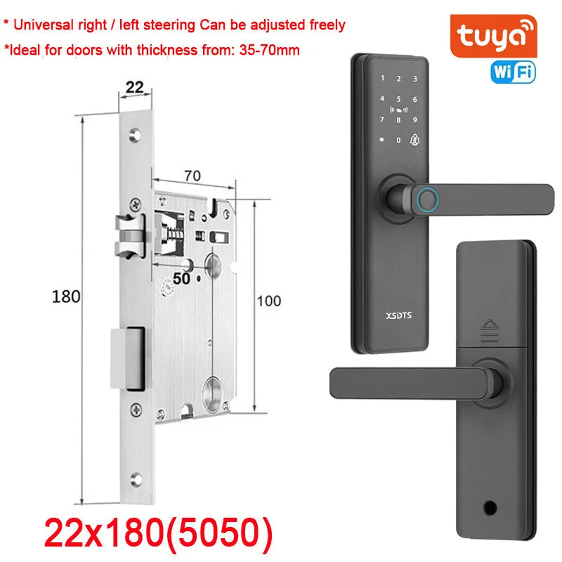 Serratura elettronica biometrica per porta, serratura intelligente digitale nera, app Tuya, sblocco remoto senza chiave, serratura per porta con impronta digitale