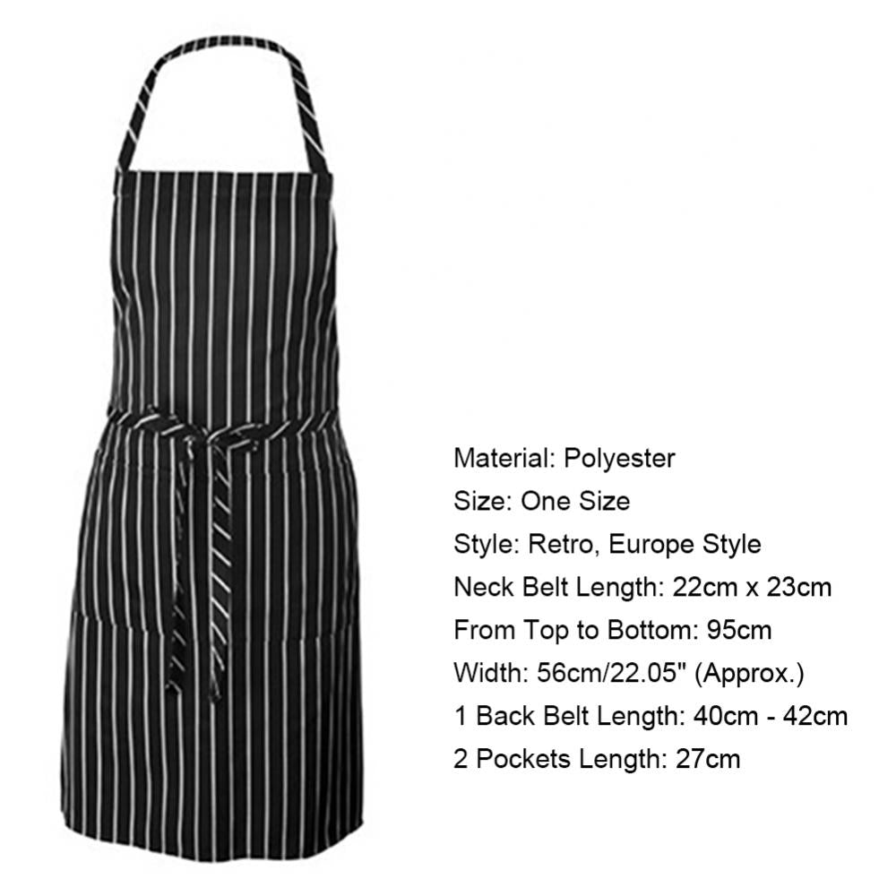 Grembiuli da cucina a righe nere,unisex, grembiuli da cuoco e cameriere, grembiuli ristoranti, bar, negozi, caffè