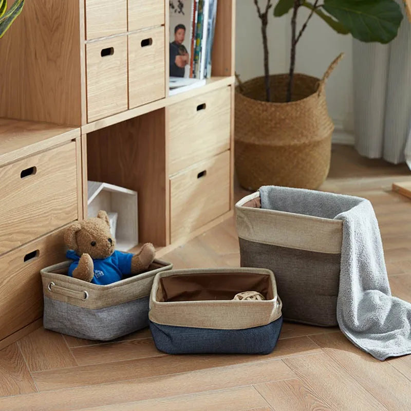Cestini portaoggetti in cotone e lino senza coperchio, doppio strato in tela