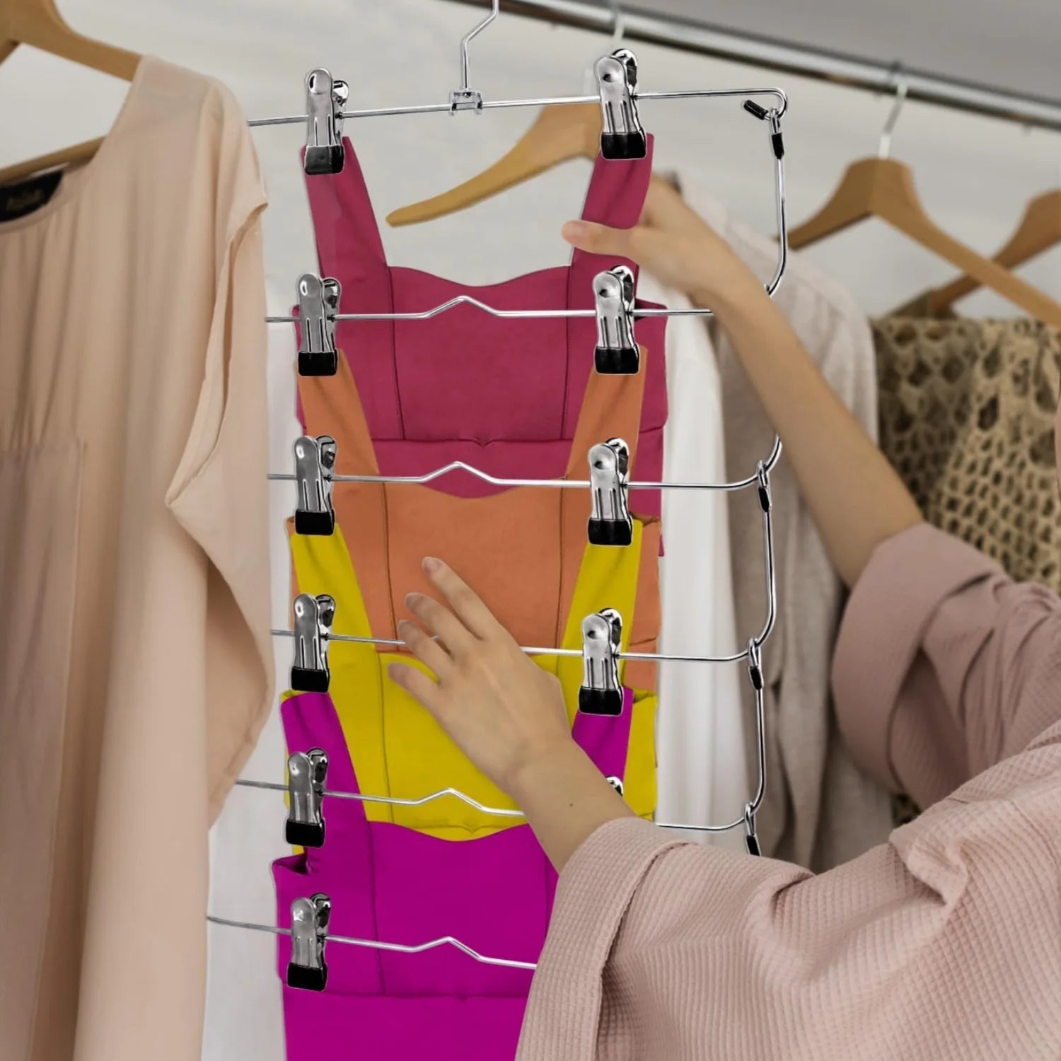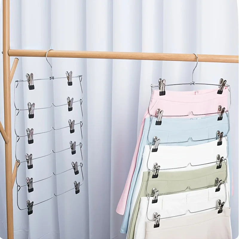 Grucce salvaspazio per gonne, grucce per pantaloni con clip a 6 livelli, organizer e contenitori per armadi, grucce salvaspazio