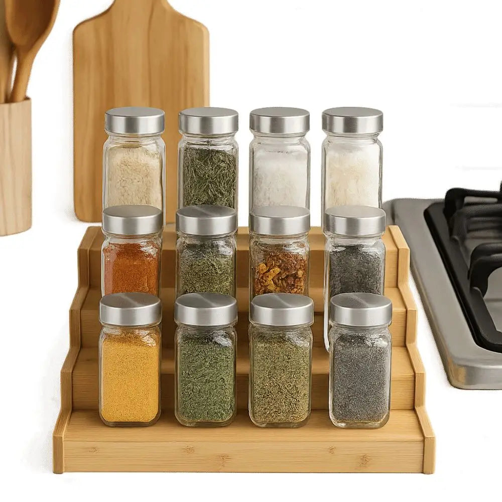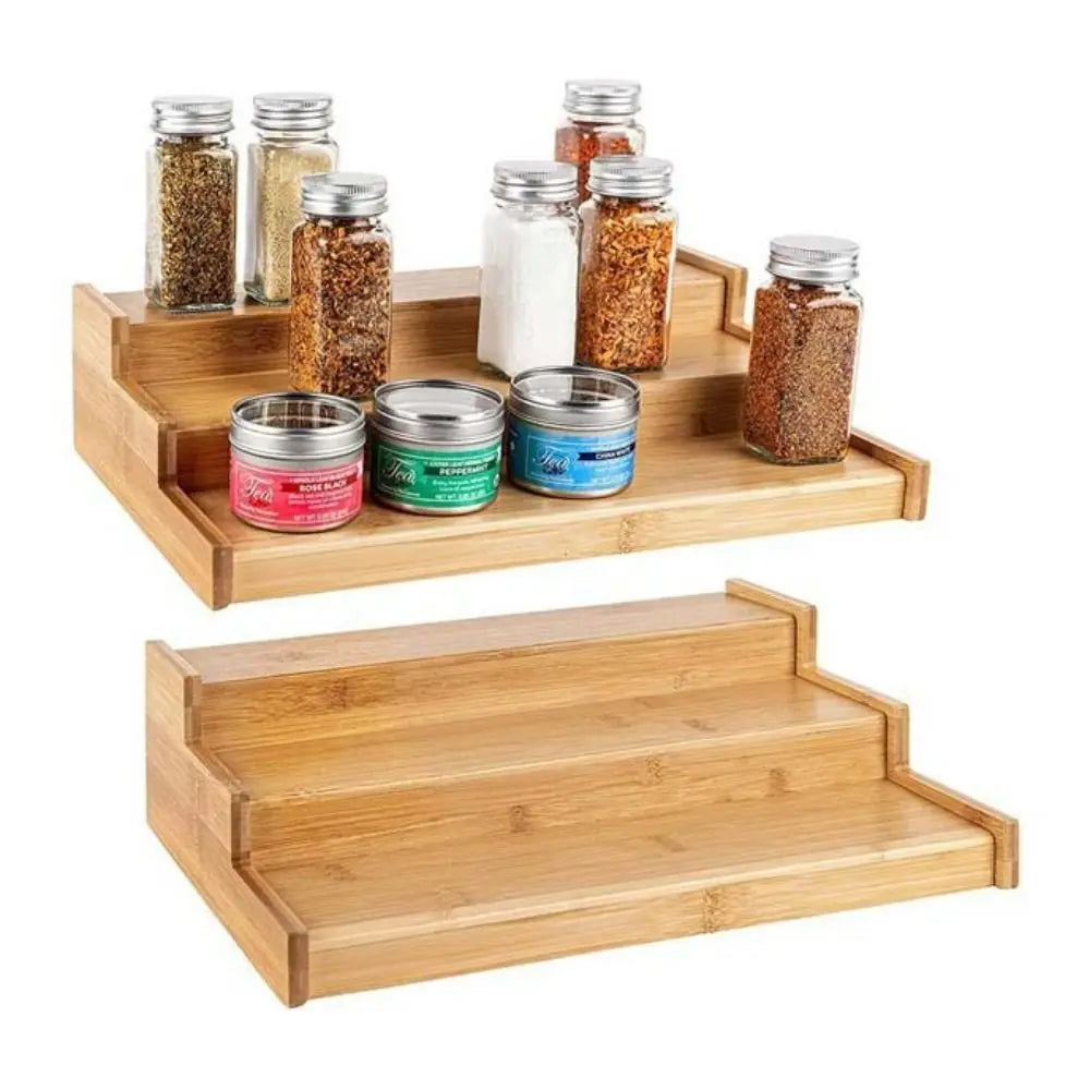 Porta spezie in legno massello a 3 livelli, salvaspazio, organizer per spezie multilivello, resistente espositore per spezie da cucina