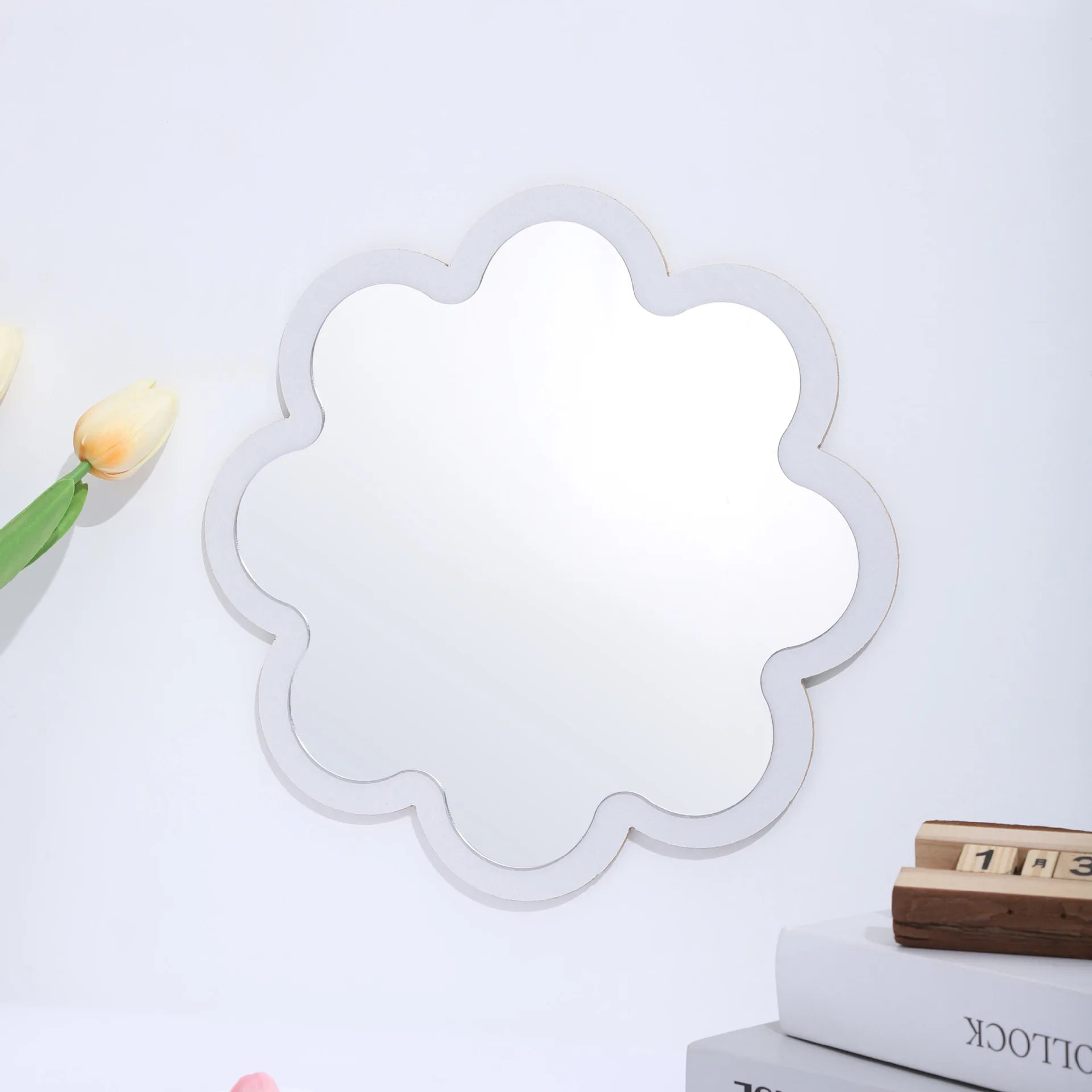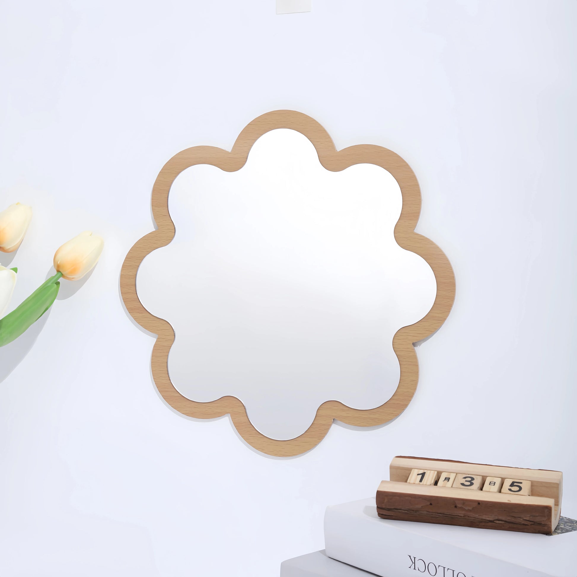 Specchio da parete creativo in legno acrilico a doppio strato da 11,4 pollici per bagno, dormitorio, bagno, specchio per il trucco, squisiti accessori per foto di ragazze