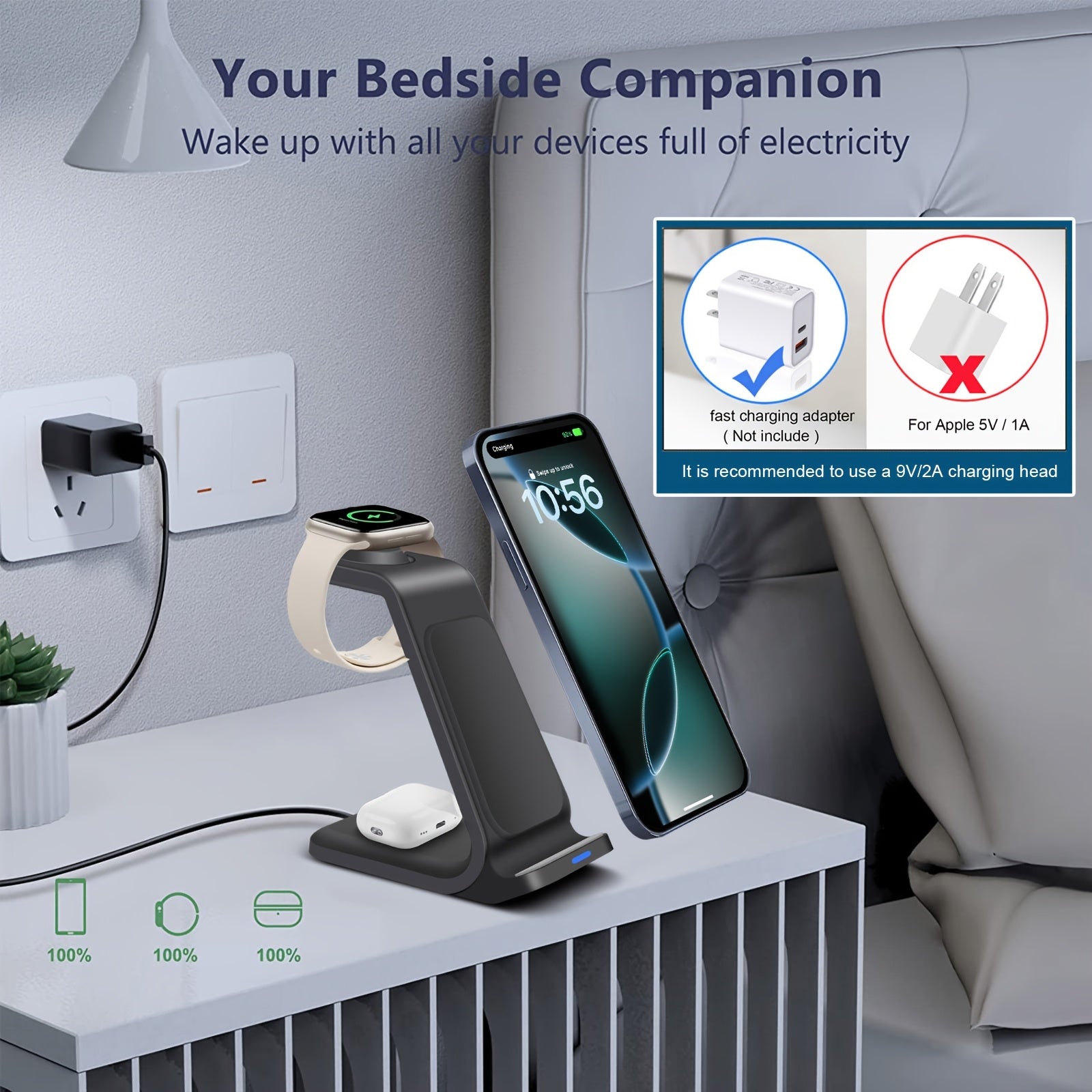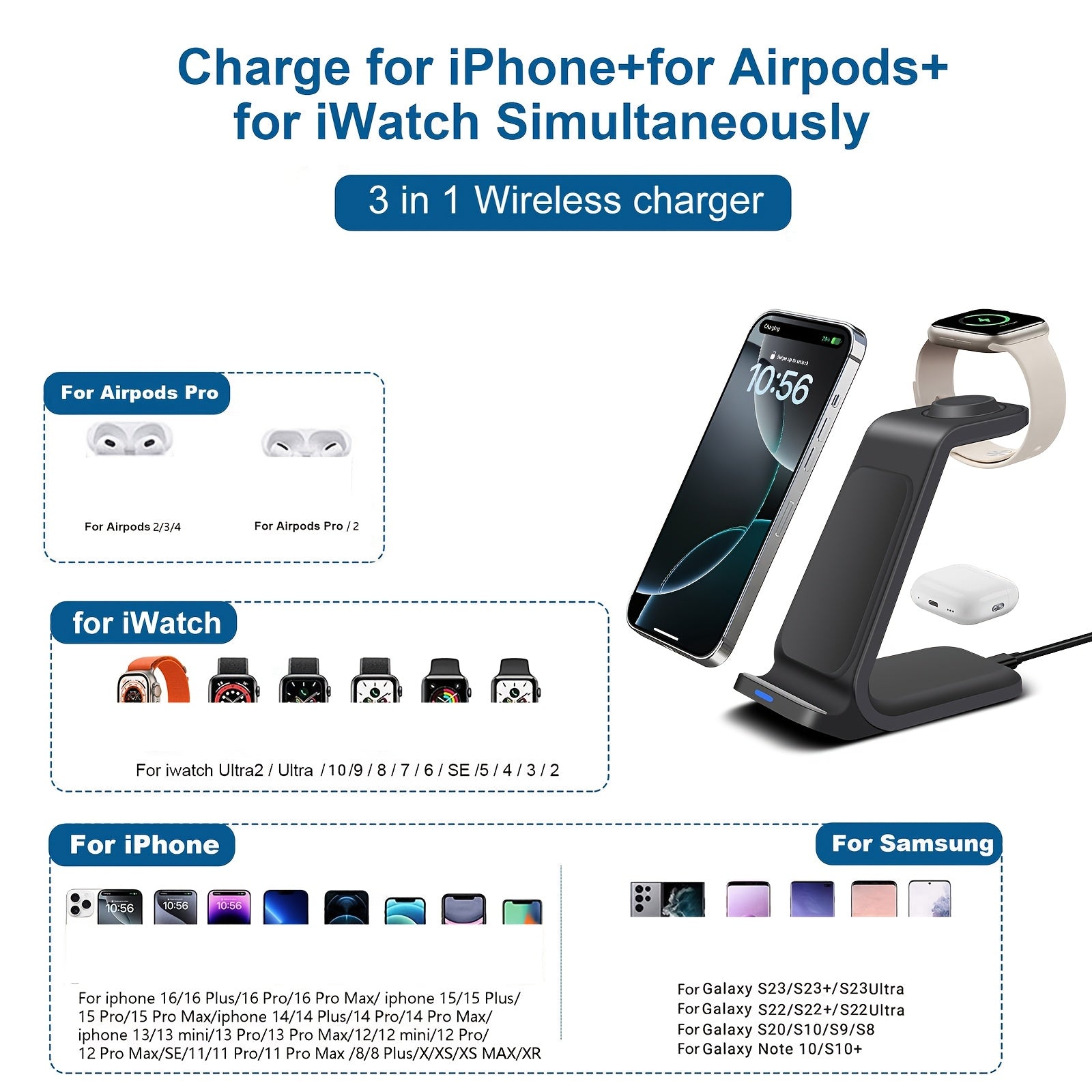 Stazione di ricarica wireless 3 in 1 per iPhone 16 15 14 13 Pro/Pro Max Ricarica wireless per iWatch Ultra 2/10/9/8/7/6/5 Airpods Pro 2/3/4 Dock di ricarica