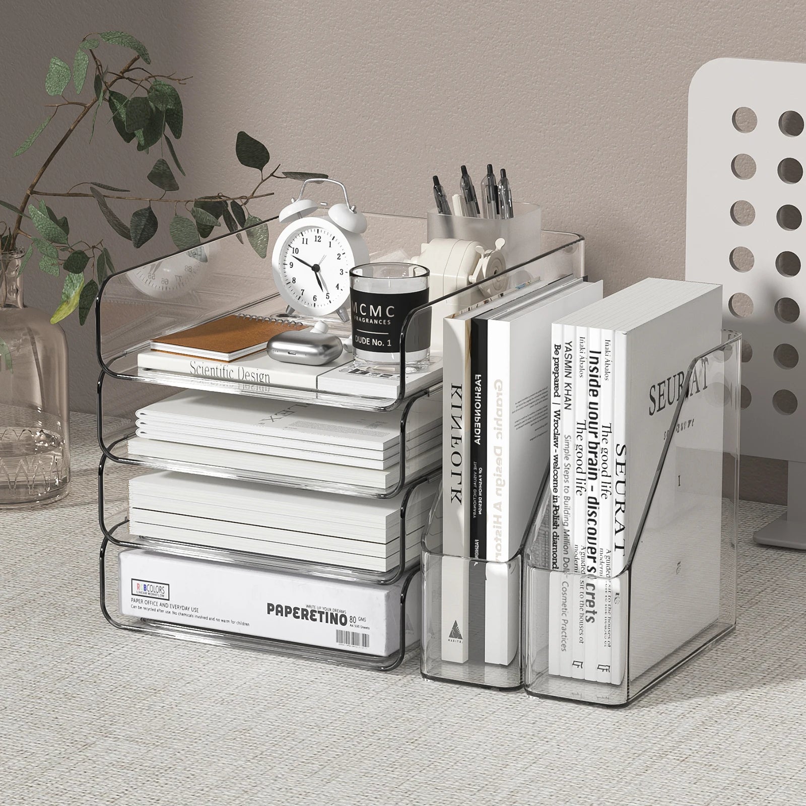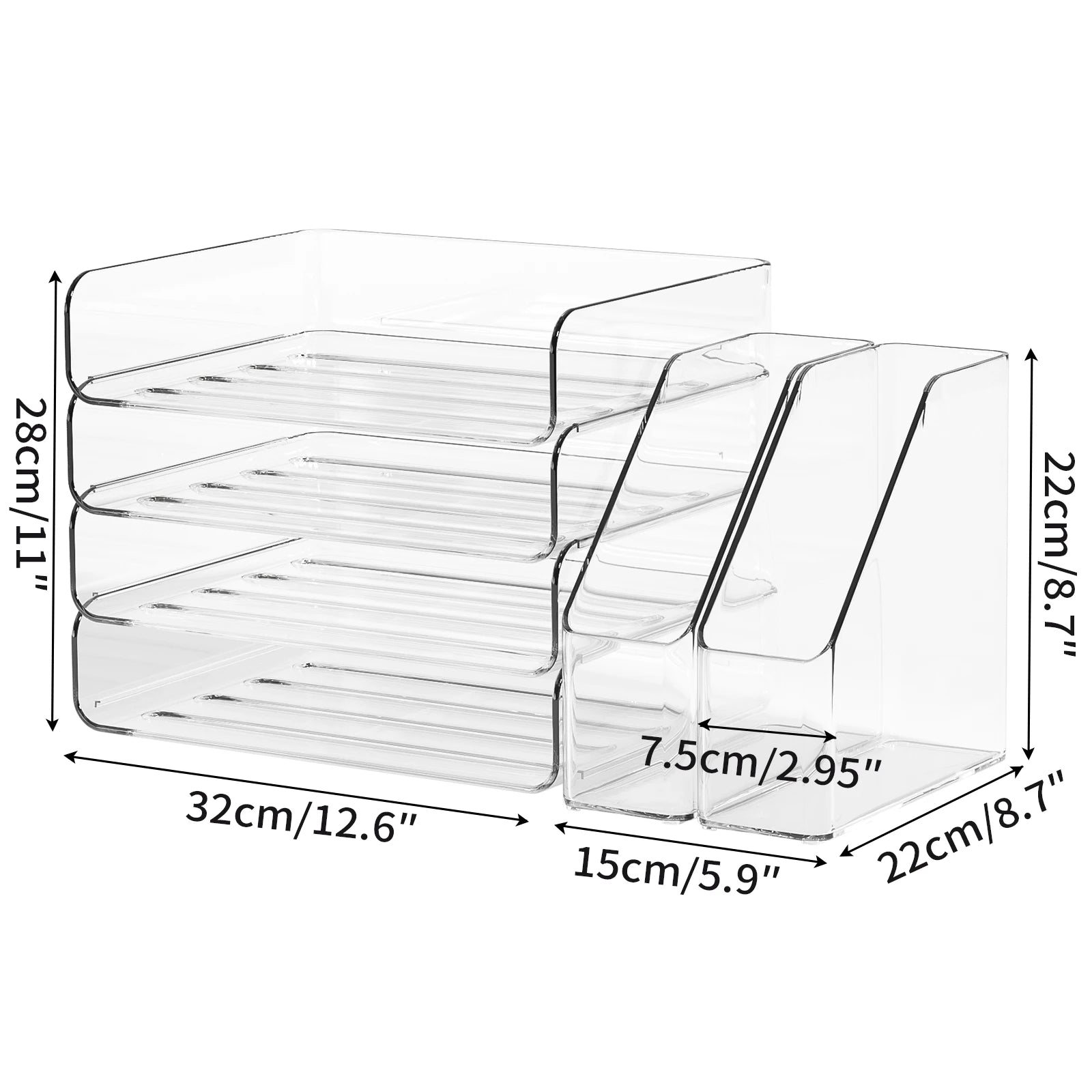Organizer da scrivania con 2 portadocumenti verticali, vassoio portadocumenti impilabile a 4 livelli, Cl