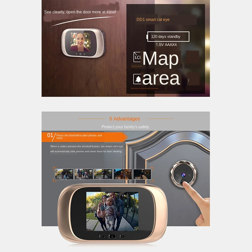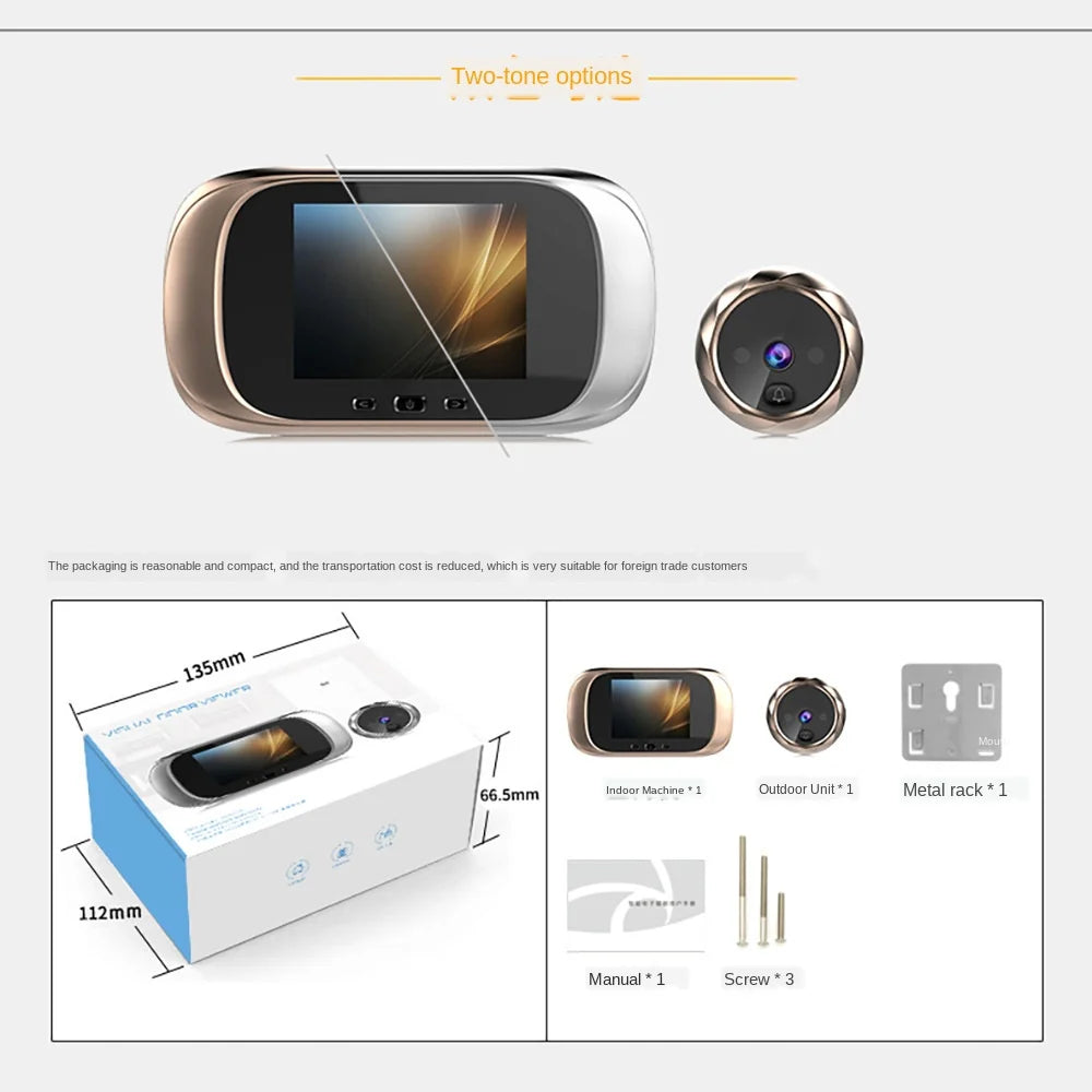 Videocitofono digitale LCD da 2,8 pollici, spioncino, telecamera di monitoraggio, campanello da 90 gradi