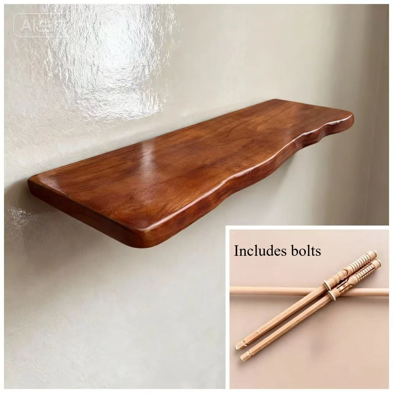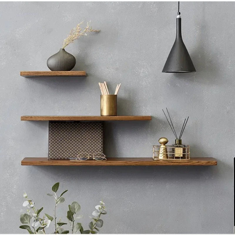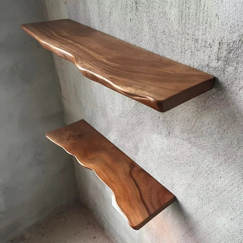 Mensole galleggianti per mensole da parete in legno con bordo vivo e venature naturali