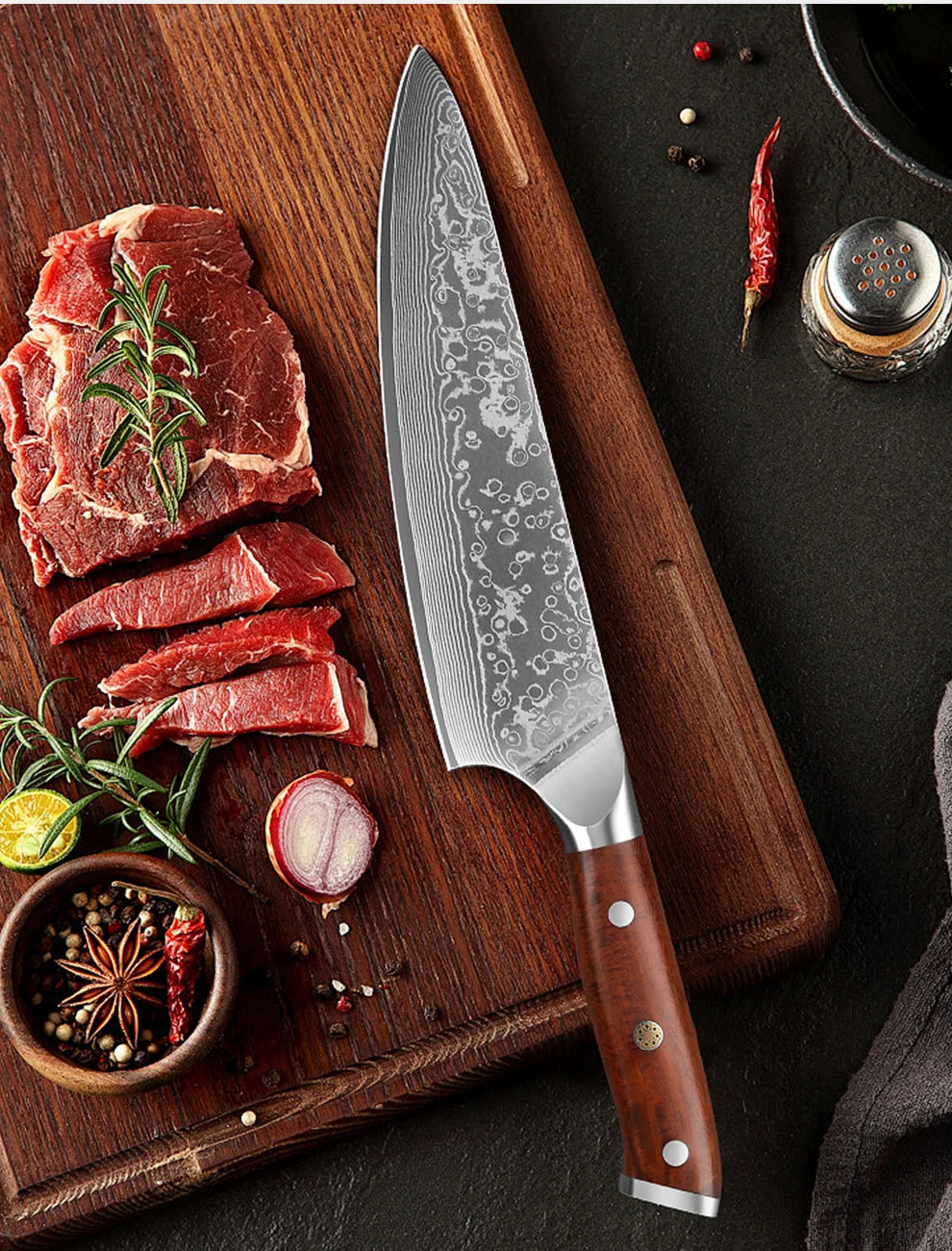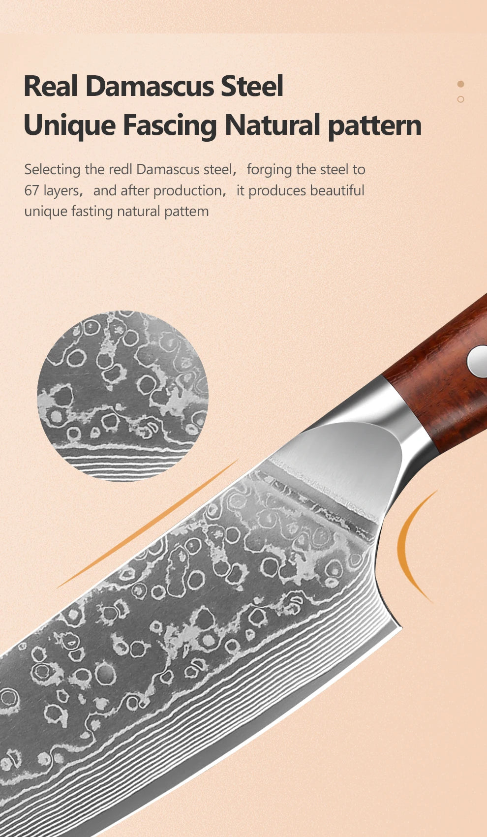Set di coltelli da cucina da chef, 67 strati, in acciaio Damasco, coltello da cucina super affilato, coltello da frutta di alta qualità, utensili da cucina