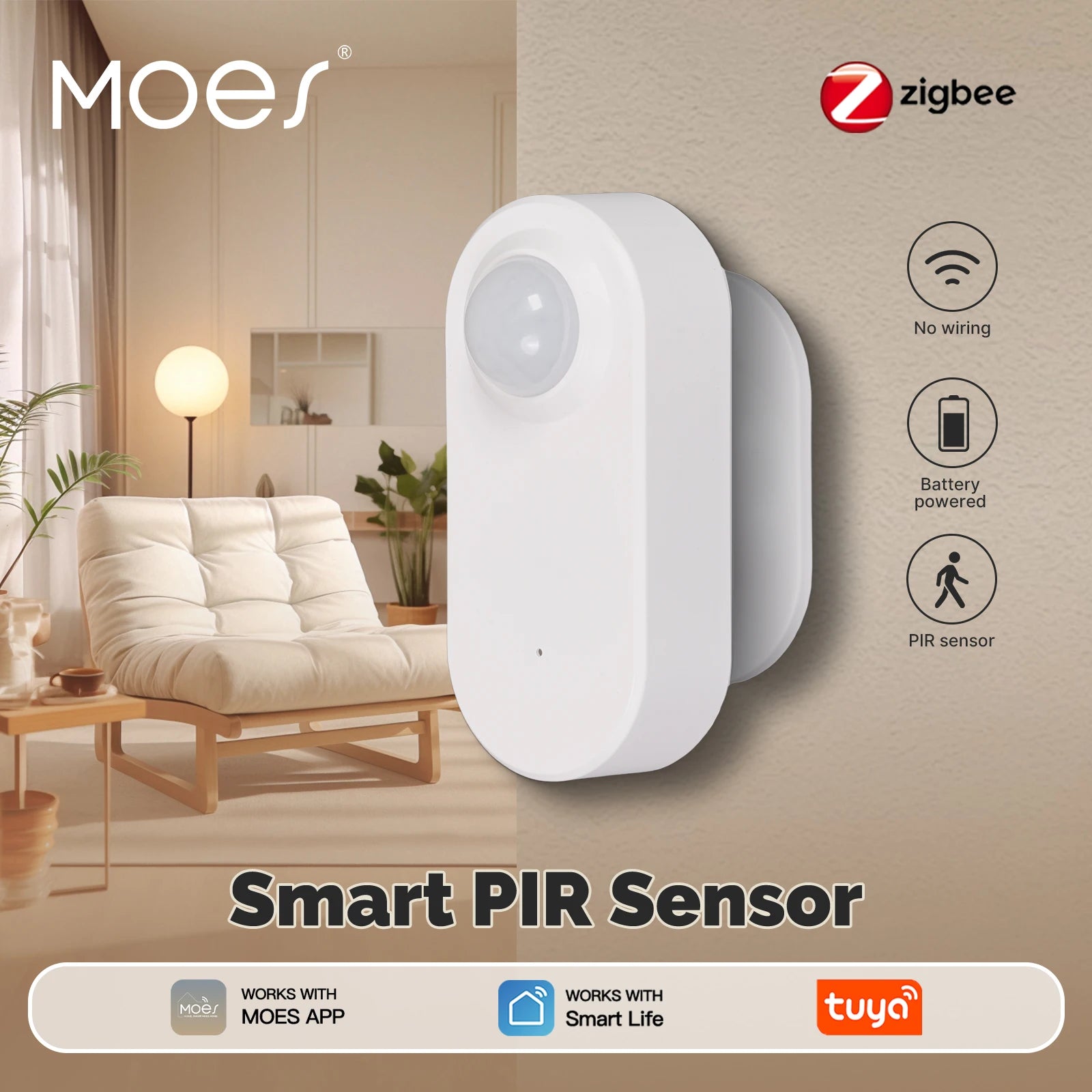 Sensore PIR intelligente Tuya alimentato a batteria, rilevamento del movimento a infrarossi del corpo umano, collegamento alla scena, funziona con l'app Smart Life