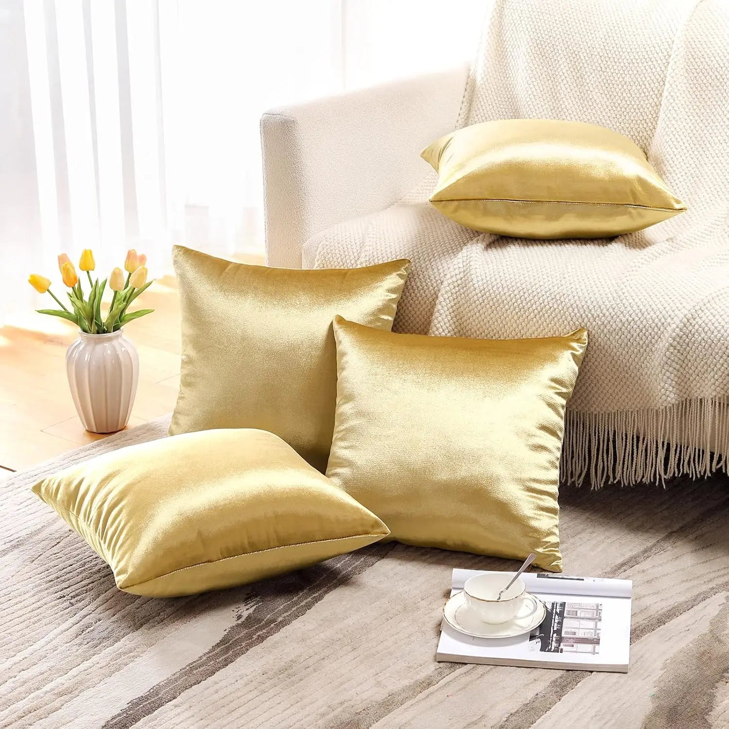 Federe per cuscino oro, quadrata solida, comoda fodera per cuscino