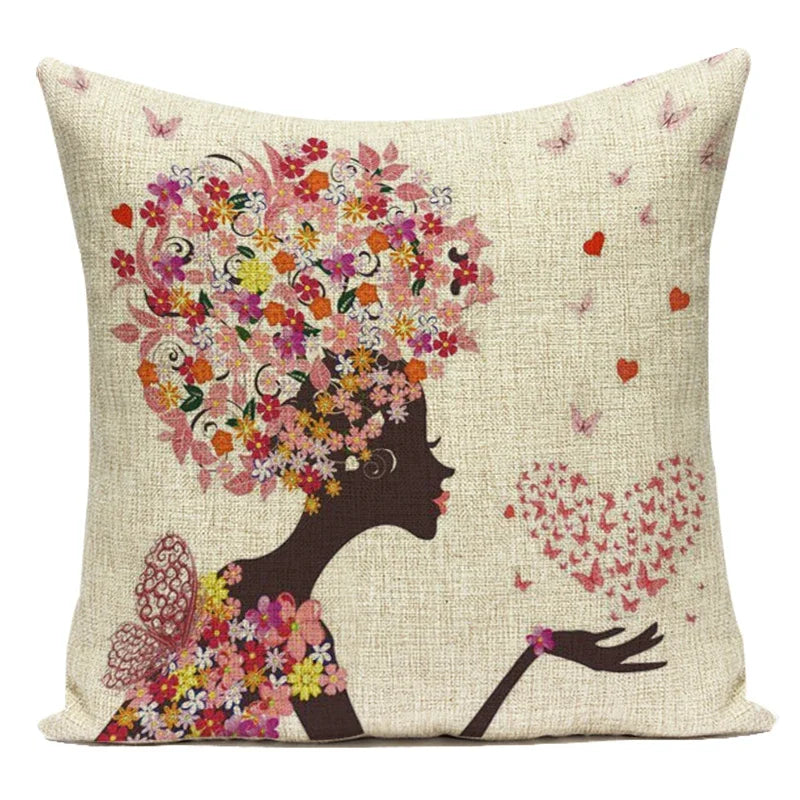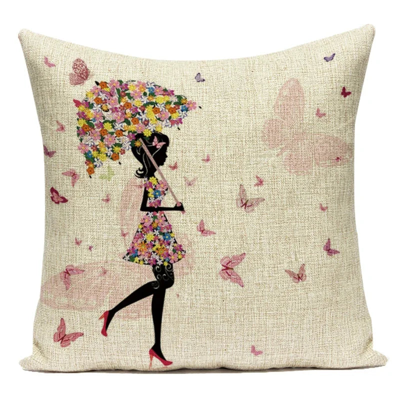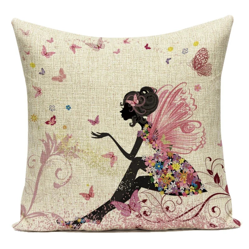 Federa per cuscino decorativo in poliestere con fata dei fiori