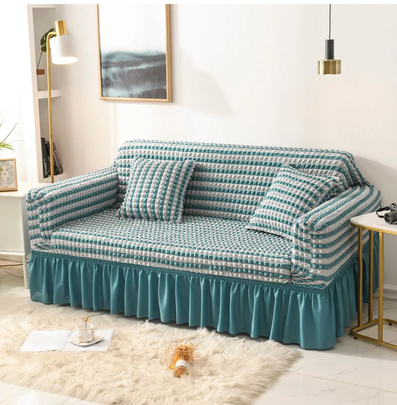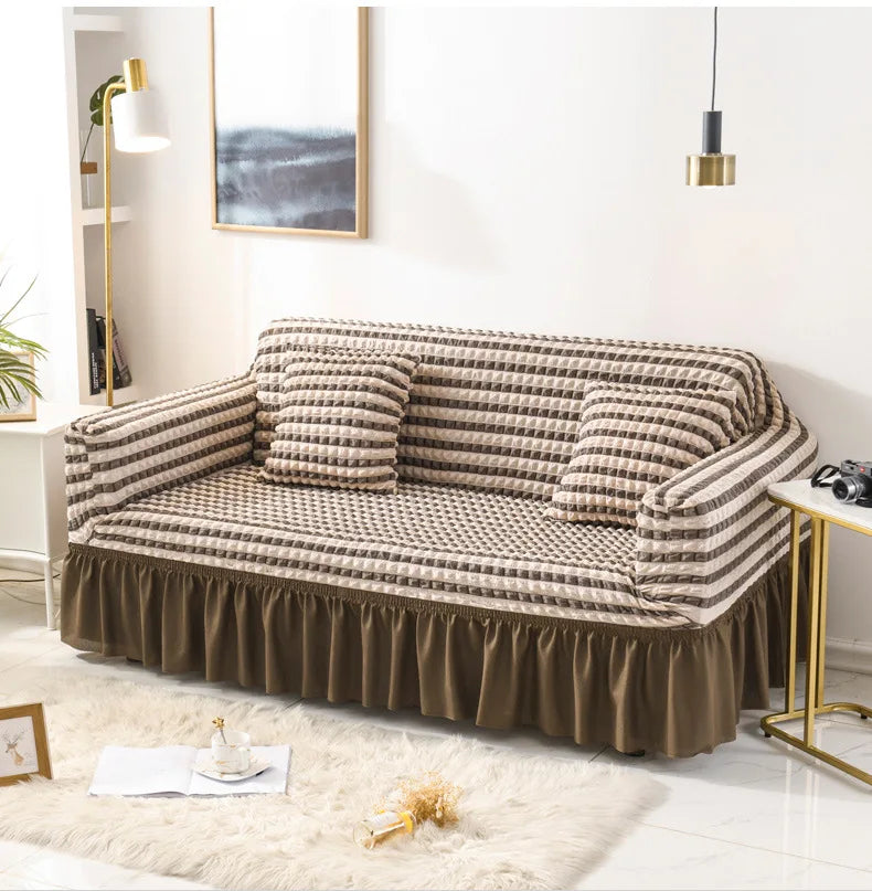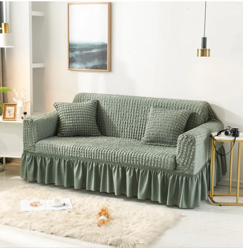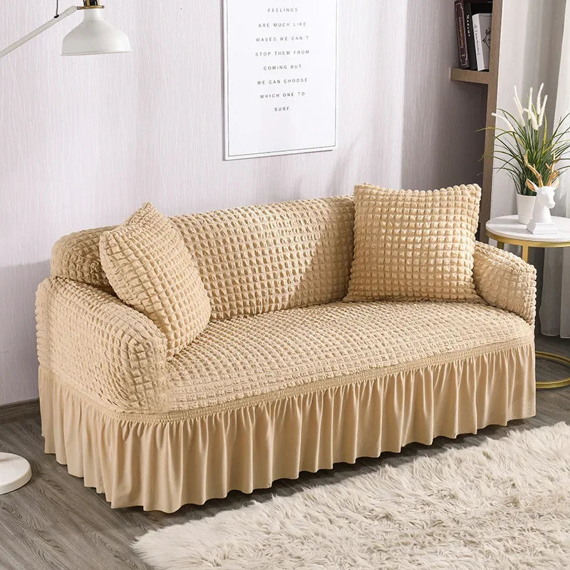 Copridivano per soggiorno, copridivano angolare elastico a forma di L, in tessuto spesso e arricciato, per divano a 1/2/3/4 posti