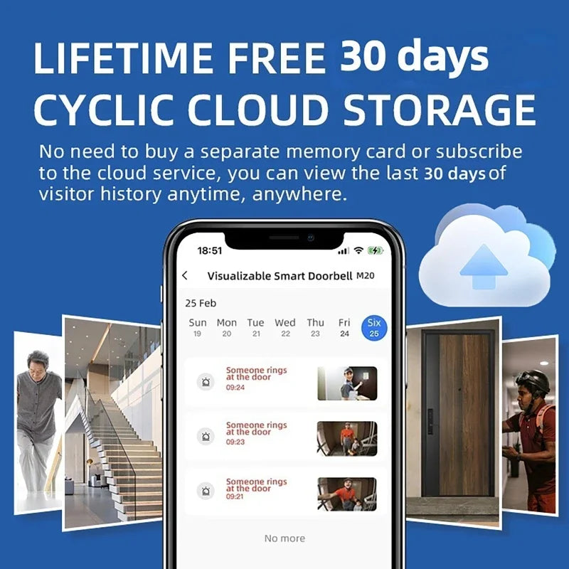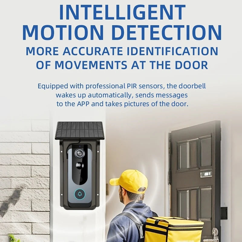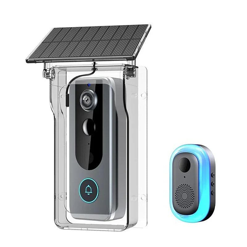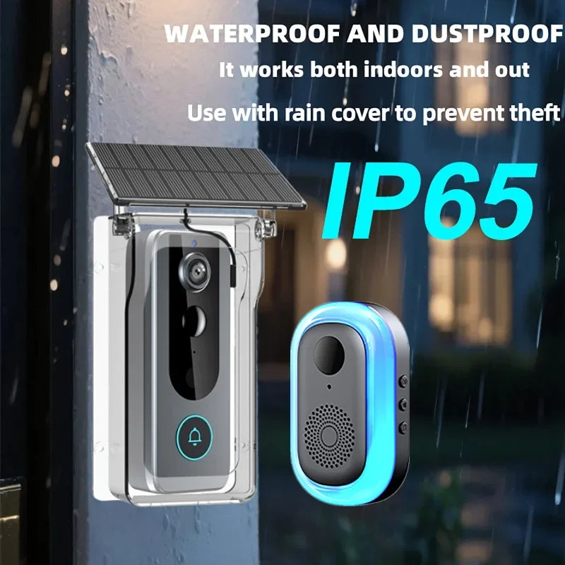 Campanelli senza fili, copertura di ricarica solare e antipioggia, spioncini digitali, telecamera di sicurezza Wi-Fi Tuya, citofono, videocitofono Smart Ring