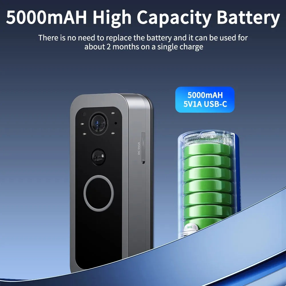 Smart Wireless Intercom Campanello Digitale Videocamera per Porta Nuova Versione Supporta Wi-Fi Tuya Registrazione Automatica Impermeabile